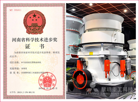 2015年12月HPT液壓圓錐破碎機榮膺河南省科技進步獎三等獎,鄭州市科技進步獎一等獎,再次刷新自主創新與品牌效應的新高度。在本次科學技術進步獎評審標準中,“HPT液壓圓錐破碎機”以節能環保、產量大幅提高、粒徑均勻等技術創新優勢獲得與會專家的高度認可與贊揚。科技創新正驅動著黎明重工向著創新型企業的目標一步步堅實地邁進。